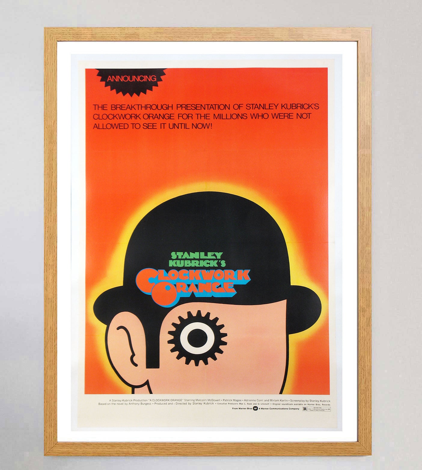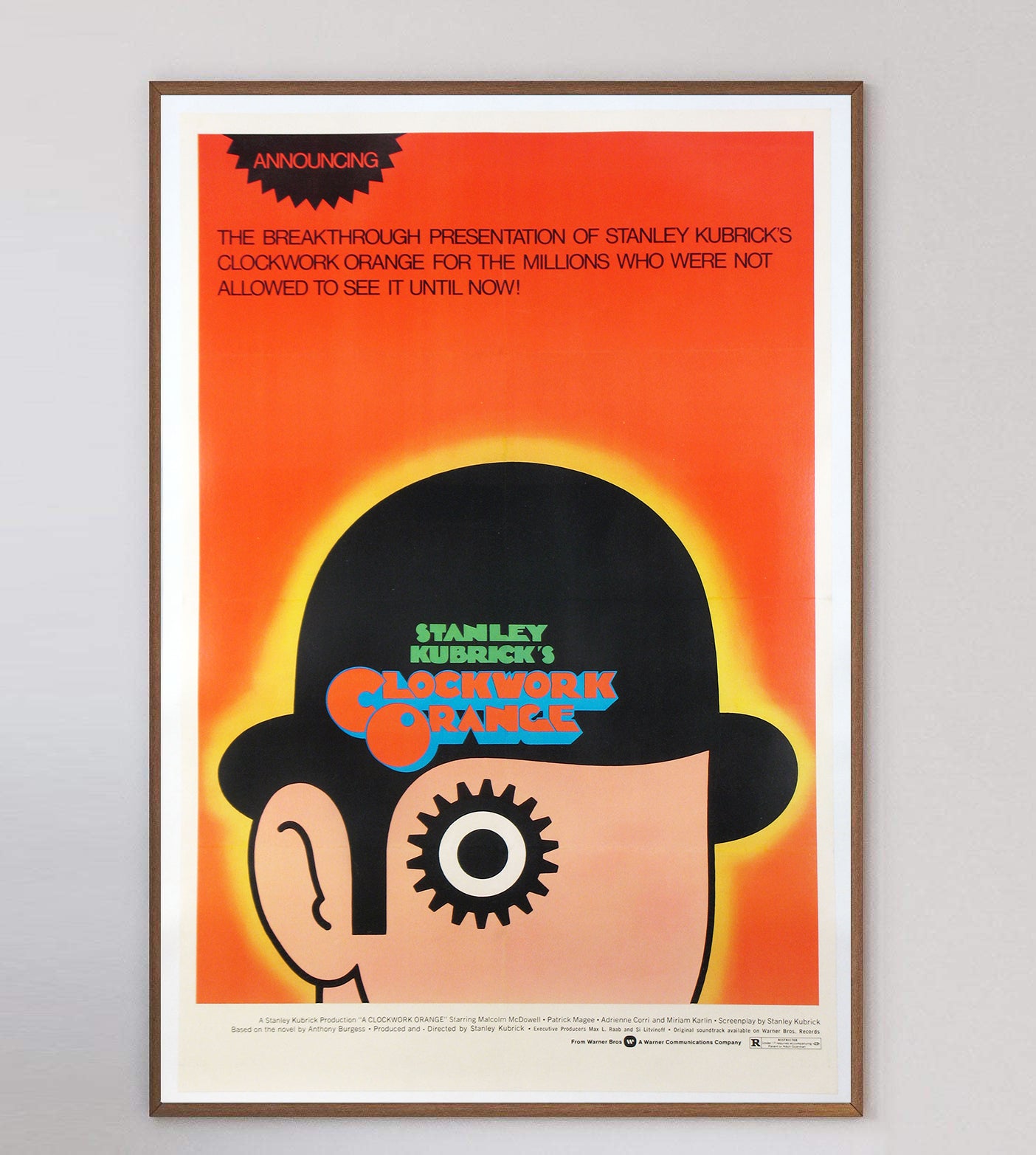 This stunning poster is one of the rarest releases of the 1970s, featuring the stunning design by David Pelham depicting Malcolm McDowell's Alex. The poster was created for the films R-Rated re-release and is produced with striking colour in silkscreen. The poster is in pristine mint condition and backed on linen to ensure its preservation for the decades to come. A true gem and piece of film and advertising history.