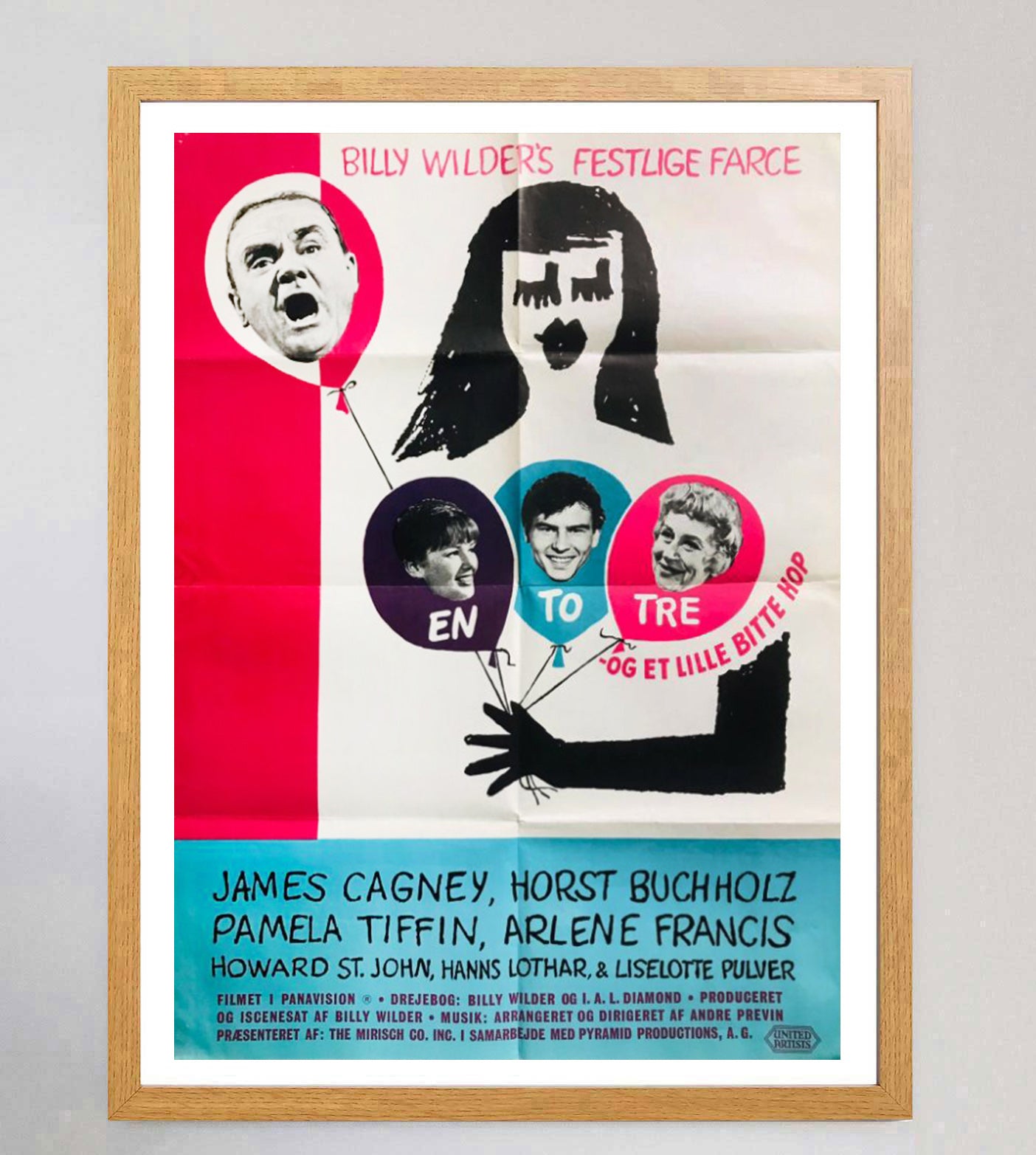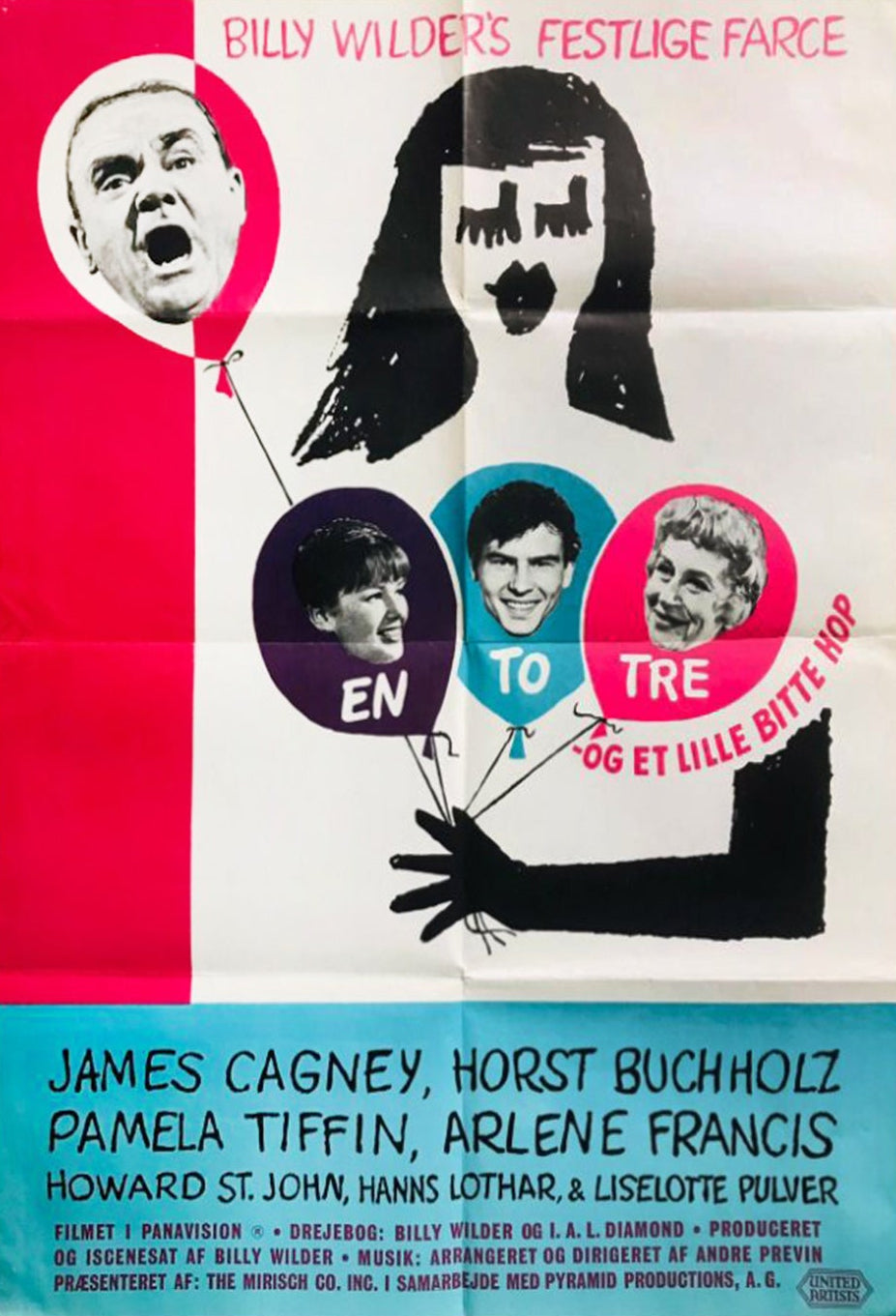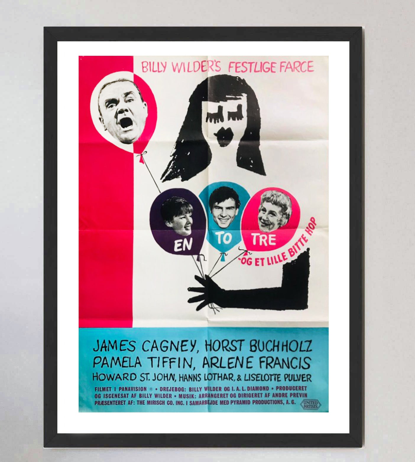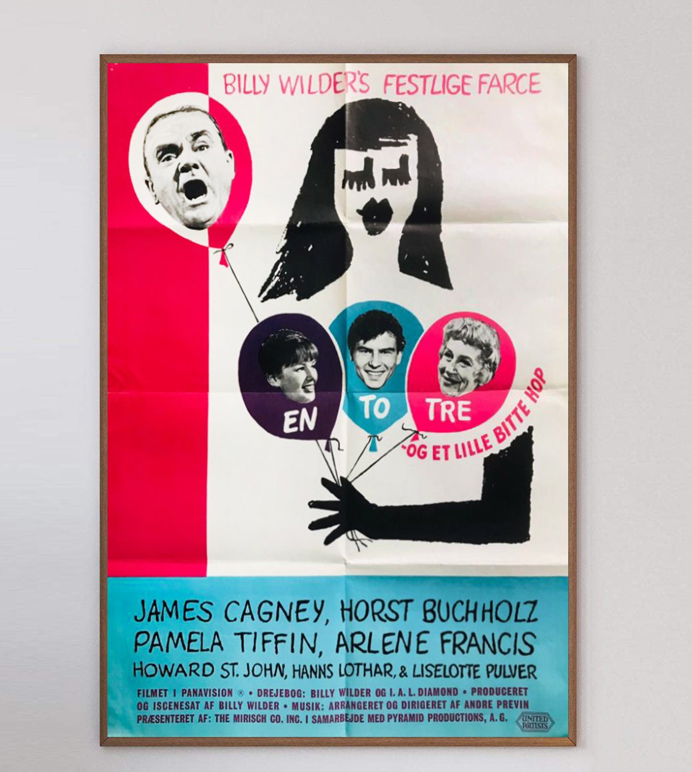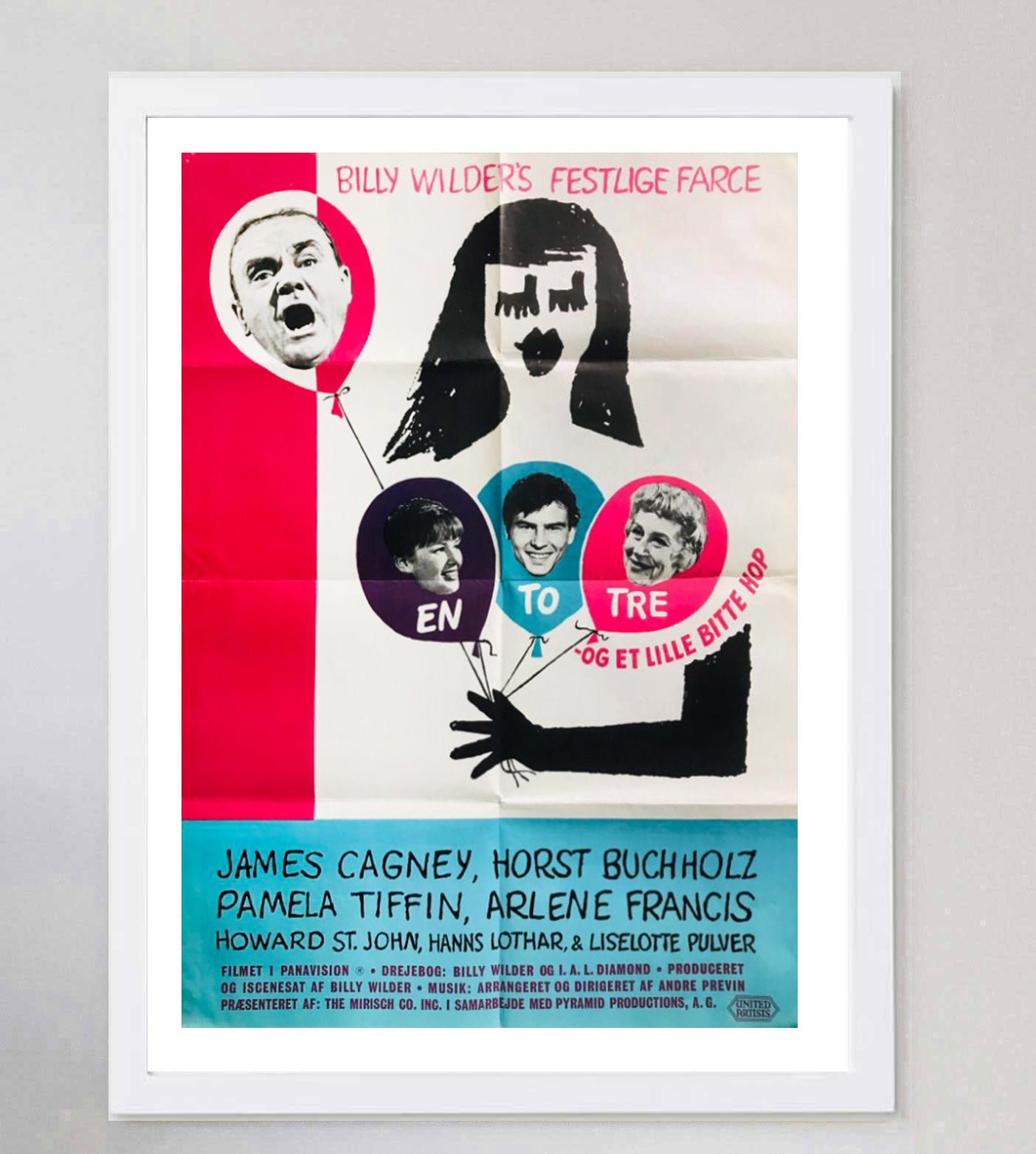 A true mid-century marvel and wonderful piece of cinema and design history from the 20th century, this first release US One-Sheet poster for the great Billy Wilder's "One, Two, Three" features brilliant artwork from the great Saul Bass. Release in 1961, Wilder's classic satire features James Cagney in his final starring role.