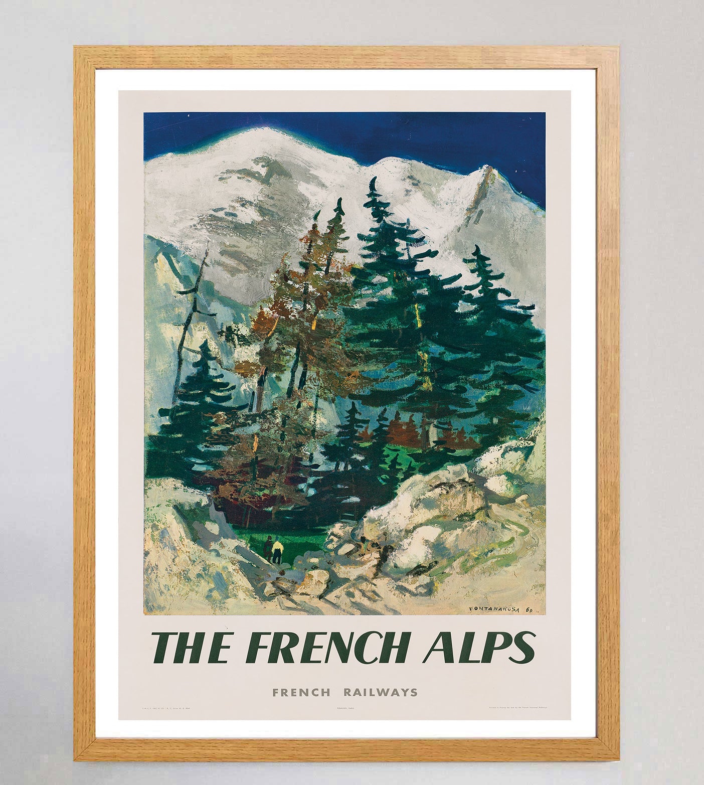 This English-language version of the SNCF posters reading "The French Alps" was created to attract foreign visitors to the region and is particularly rare, created in 1960 and in mint condition.