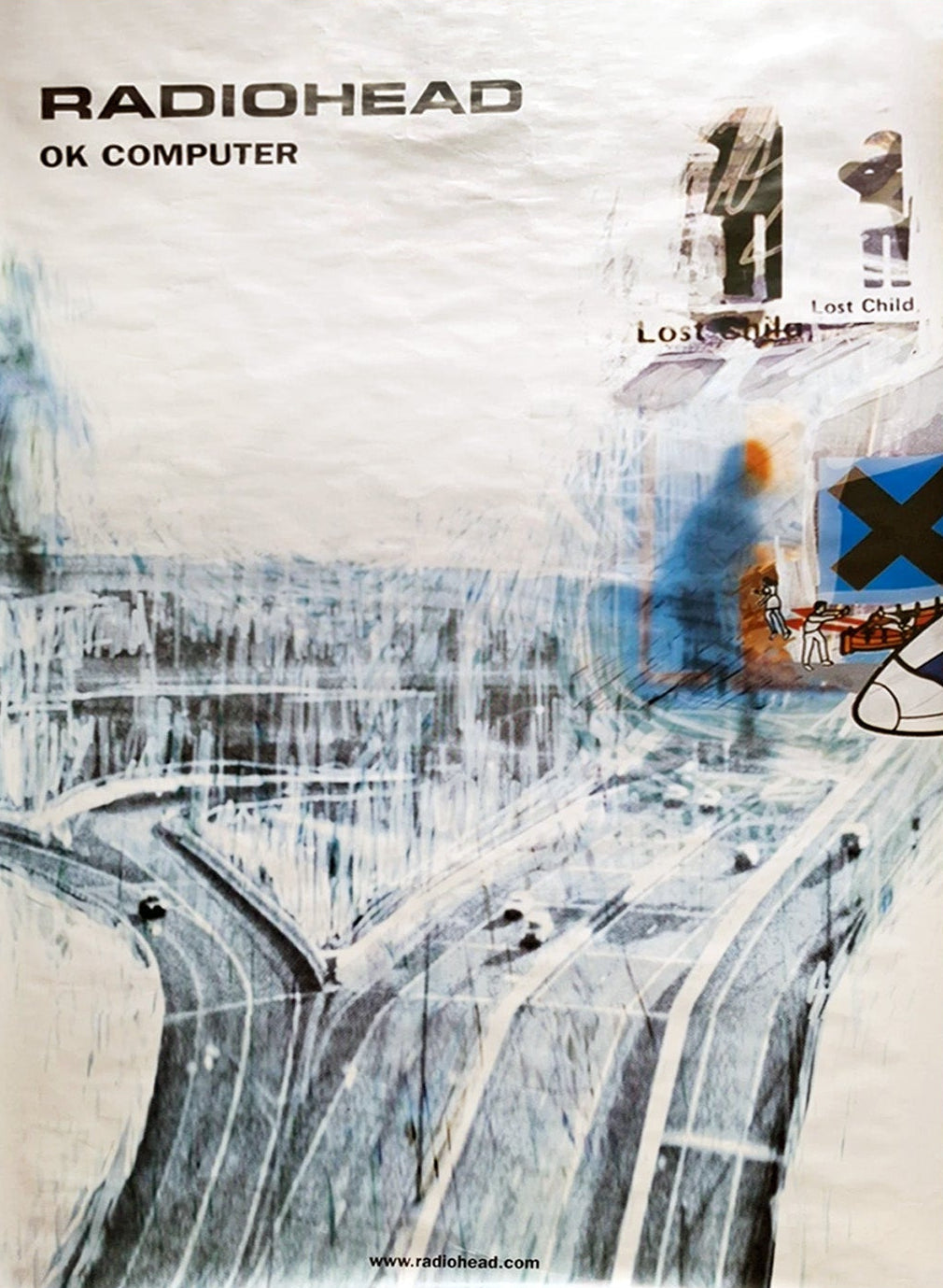 This brilliant poster is from the original promotion of the album in 1997 and was produced for subway and underground display. Featuring the iconic album artwork designed by regular Radiohead collaborator Stanley Donwood and of course Thom Yorke. This piece is extremely rare and a great piece of music history.