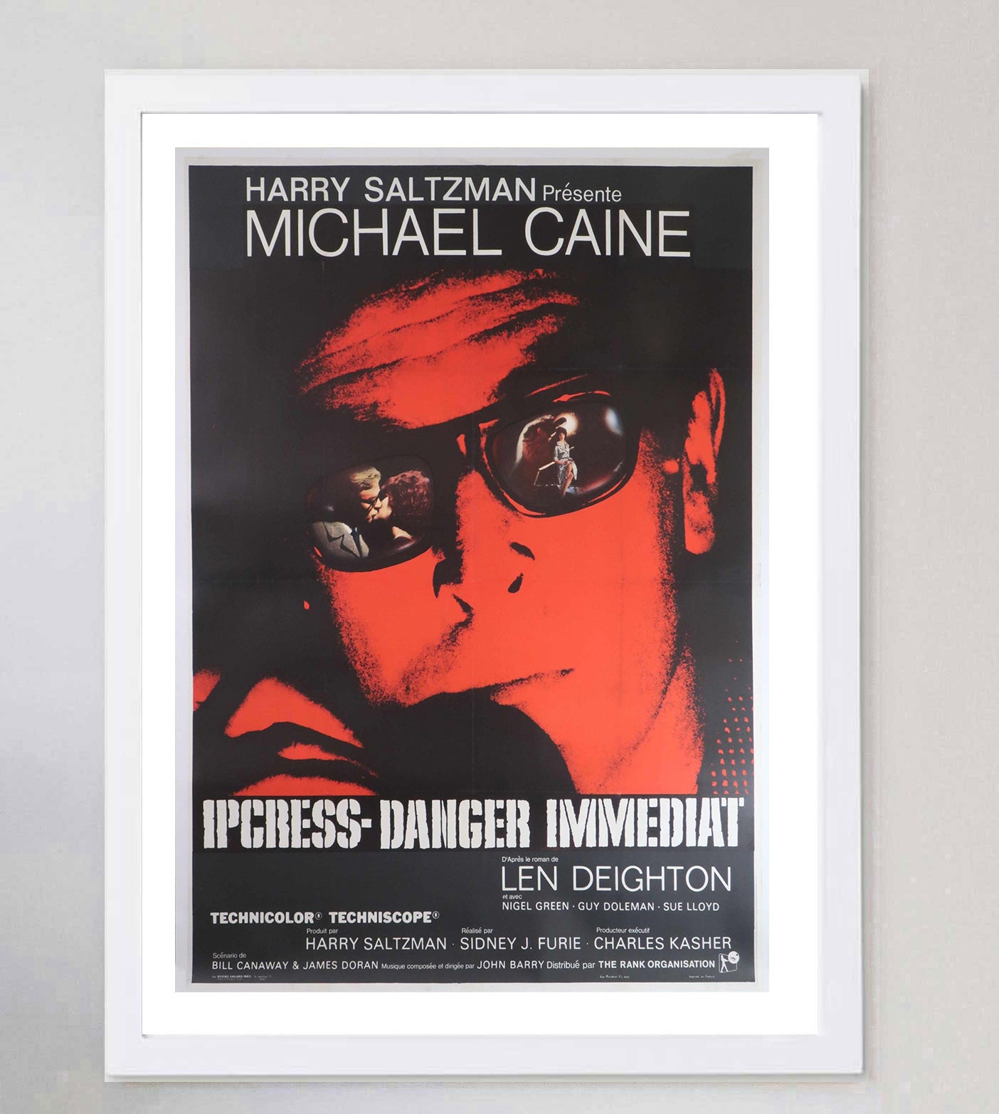 This extra-large French-Grande poster features the stunning and rare artwork of the striking red face of Caine looking on as we see the reflections in his sunglasses. The most sought after design for the film and in pristine condition, the piece is backed on linen to ensure its preservation for the decades to come.