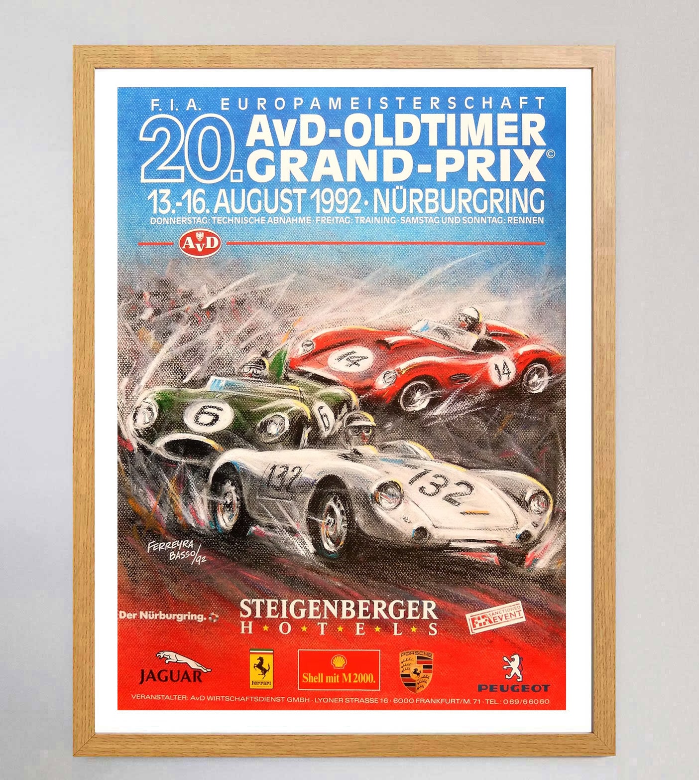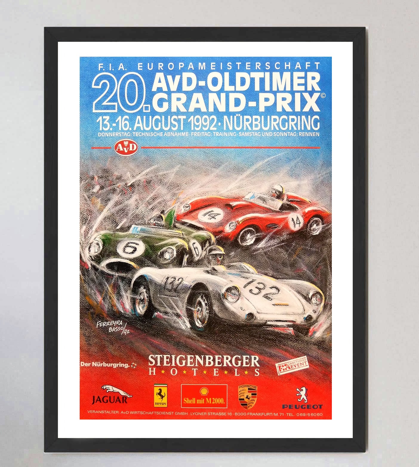 Wonderful poster created to promote the 20th AVD Oldtimer Grand Prix in 1992. The AVD Oldtimer Grand Prix at Nürburgring: a high-octane celebration of classic motorsport, where historic race cars and legendary drivers bring vintage racing to life on one of the world’s most iconic circuits.