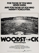 The festival has become widely regarded as a pivotal moment in popular music history as well as a defining event for the counterculture generation. The event's significance was reinforced by a 1970 documentary film for which this poster was created. The film won the Academy Award for Best Documentary Feature, and has been preserved by the National Film Library. This poster is from the 1976 reissue of the film, and is in great condition.