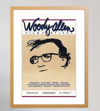 This poster is from the 1981 Woody Allen film festival and features the listed classics on at the event such as Manhattan, Annie Hall, and Interiors.