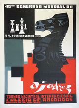 Wonderful poster promoting the 40th "Congresso Mudial De Ajedrez", or "World Chess Master" competition. Held on 9-24th October 1969, the tournament was held in San Juan in Puerto Rico.