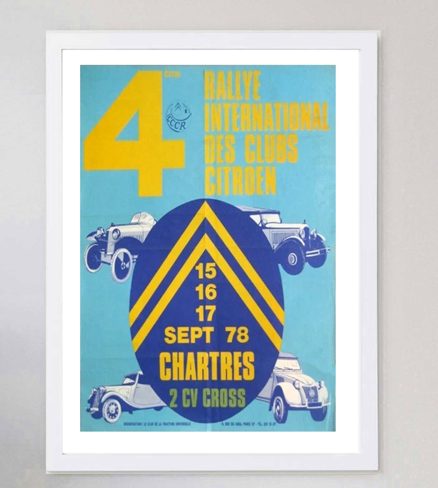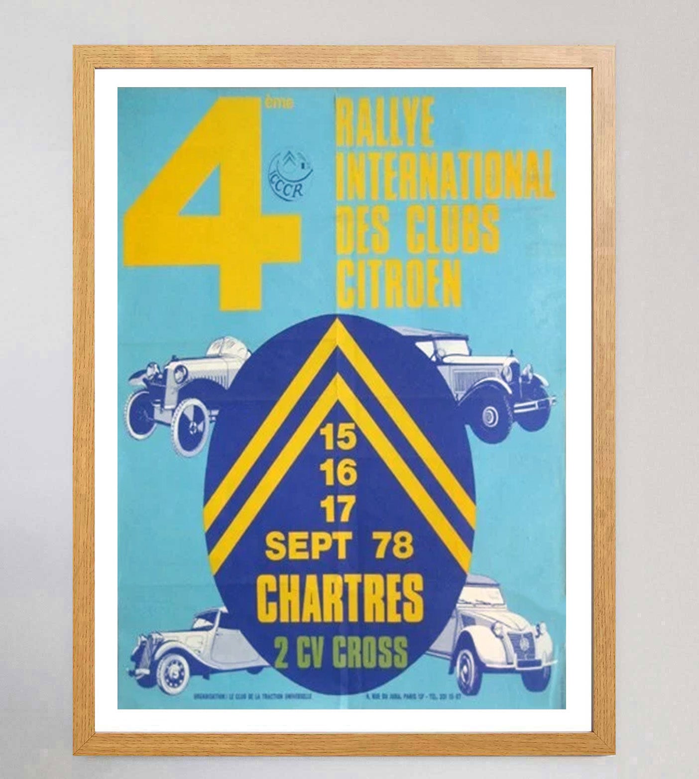 This gorgeous poster was created in 1978 for the 4th International Citroën Car Clubs Rally. The event in France brought together enthusiastic owners and aficionados of the full spectrum of Citroën models for a landmark gathering. Under the umbrella of the Amicale Citroën Internationale (ACI), the event celebrated the marque’s culture, history and community‑spirit in one grand rally of classic and contemporary Citroëns.