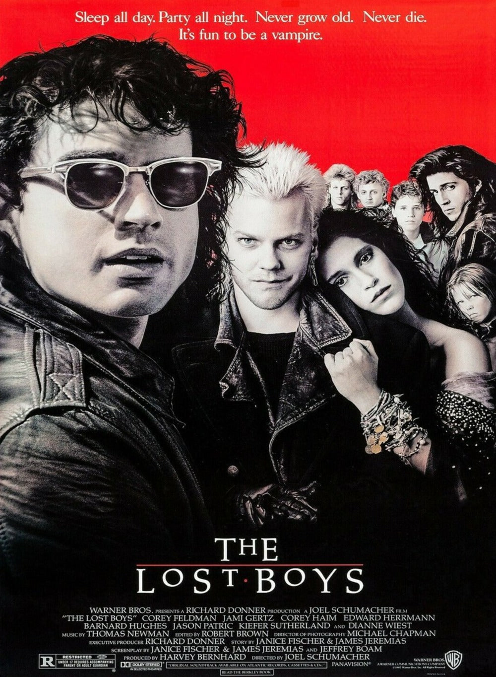 "The Lost Boys", released in 1987 and directed by Joel Schumacher, follows two brothers who move to a coastal California town overrun by a stylish gang of vampires. A solid theatrical performer that grew into a cult favorite, the film left a lasting legacy through its blend of horror, humor, and ’80s pop style, shaping modern vampire cinema.