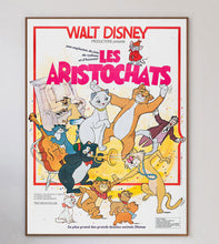 Released in 1970, the Aristocats was a commercial and critical hit worldwide. The film was the 20th Walt Disney animated feature film, and this beautiful French release poster is from the original release. Based in Paris, the film was the final film personally approved by Walt Disney before his death.
